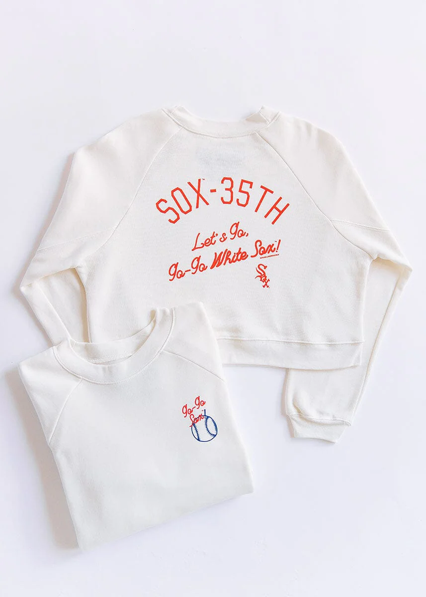Front graphic: Go-Go White Sox! A nod to the teams fight song.